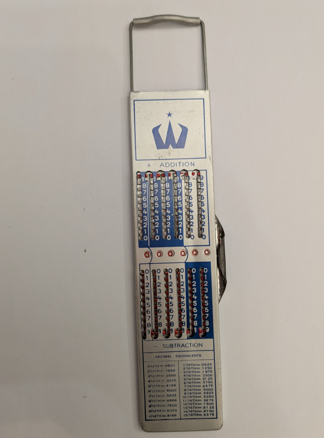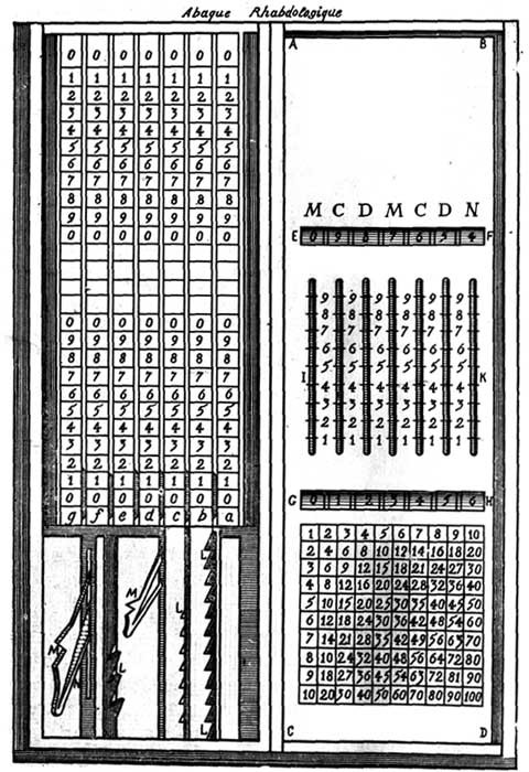 The slide calculator was devised by Architect and Doctor Claude Perrault around 1670 based on the way an abacus operates. He called his invention ‘Abaque Rhabdologique‘ – Abaque meaning abacus and Rhabdologique meaning Rabdology, the practice of performing arithmetic using Napier’s bones. There is no evidence of a working copy being produced, however the concept later spawned various commercial versions as noted below.