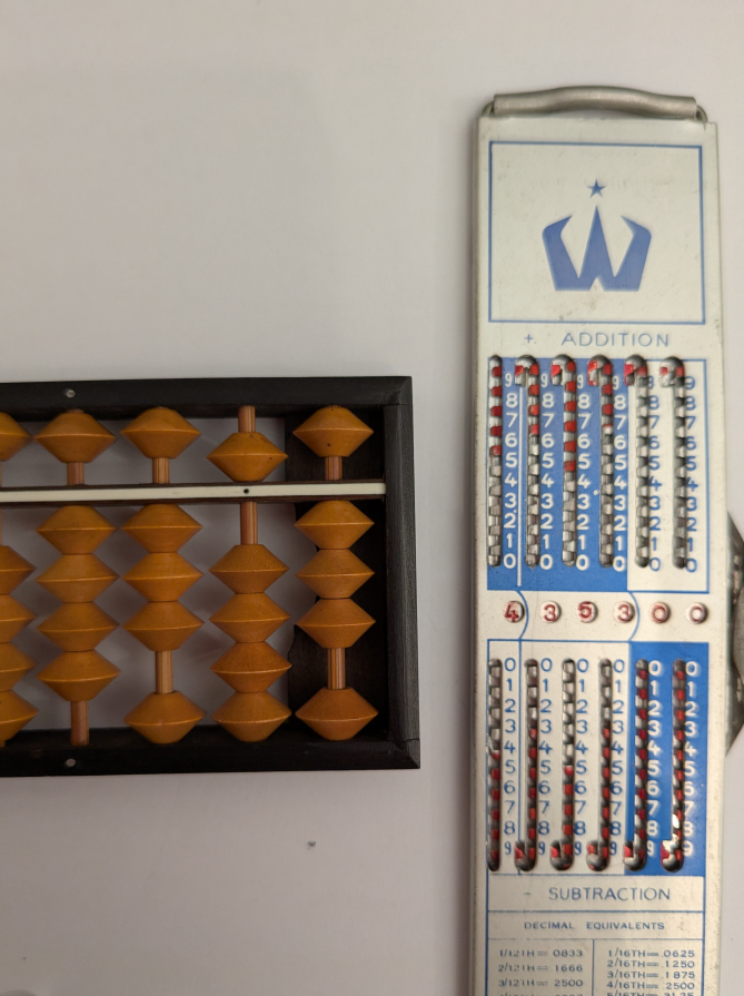 Unlike most modern electronic calculators, no intermediary calculation results are stored by either the abacus or the pocket calculator.